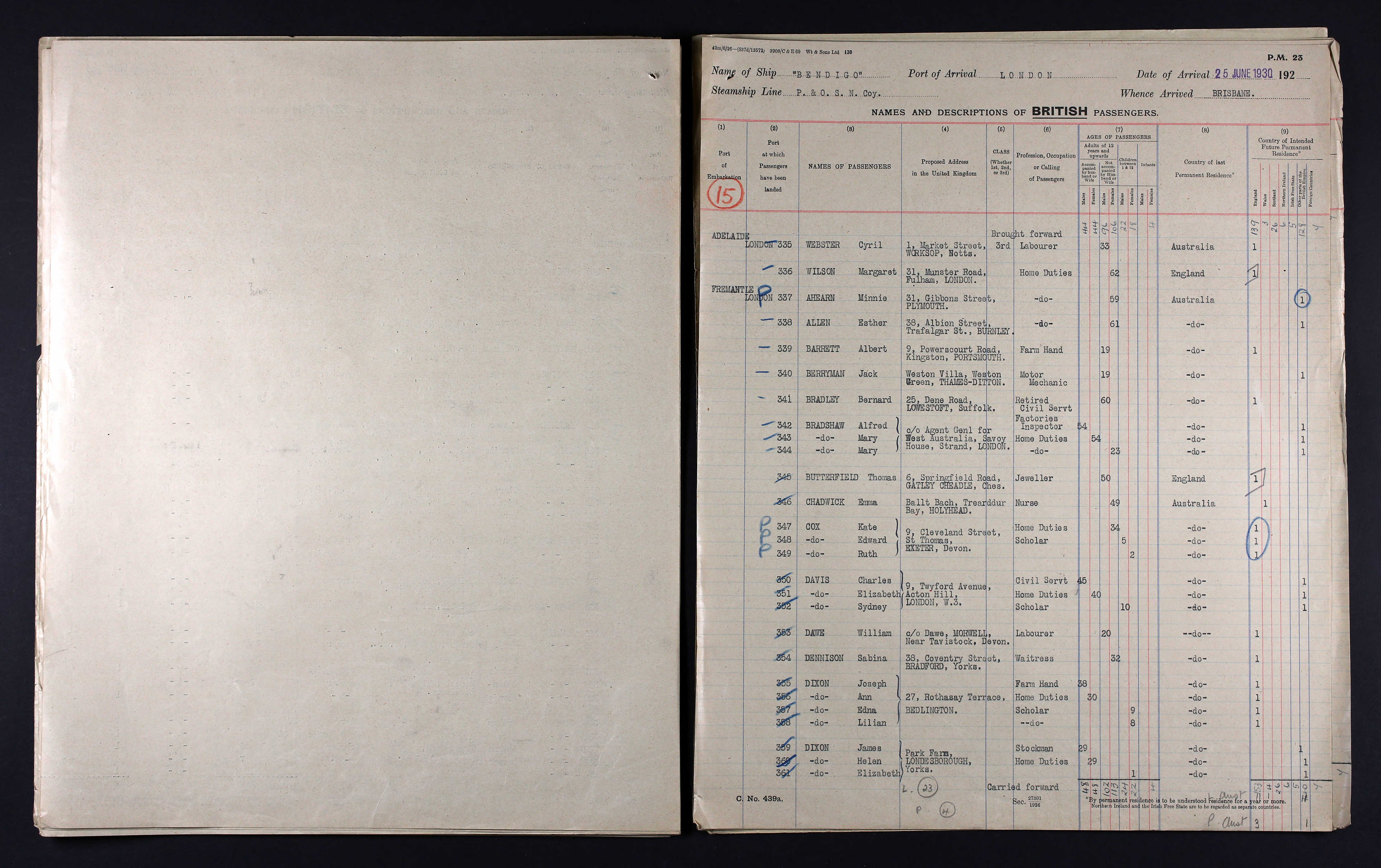 | April 1925 Aged 16 | WLD | Left for Australia | ||||